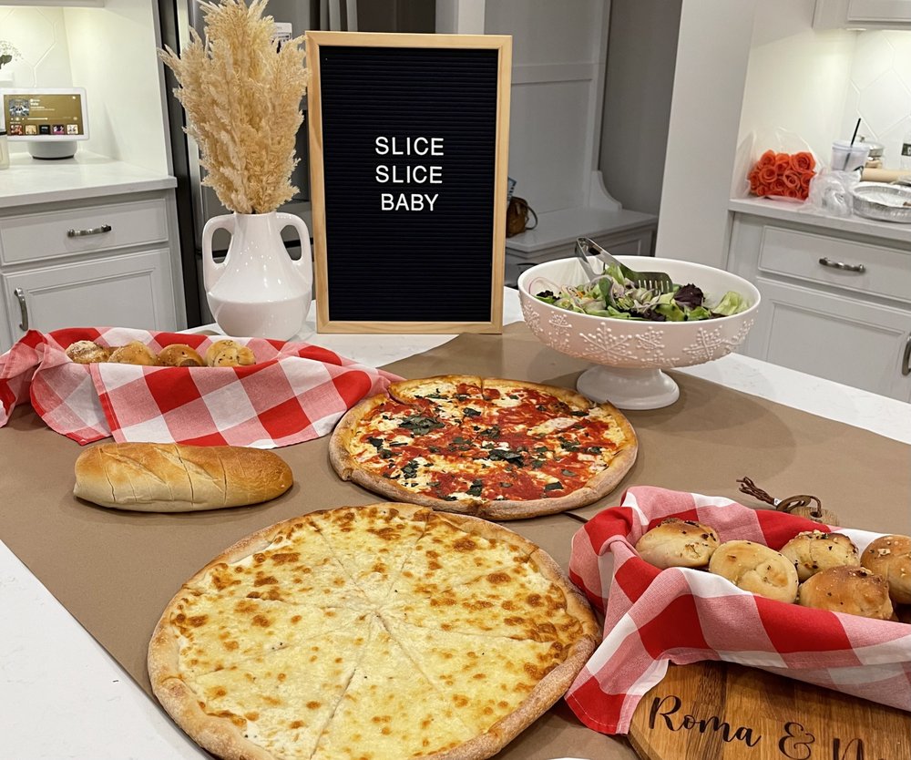 Square thin crust, imported plum tomatoes, garlic, mozzarella, grated cheese, chunk tomatoes, basil.